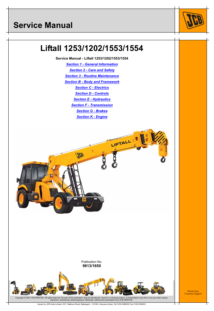 With This Service Repair Manual The Technician can solve any problems encountered in the operation of your JCB Liftall
