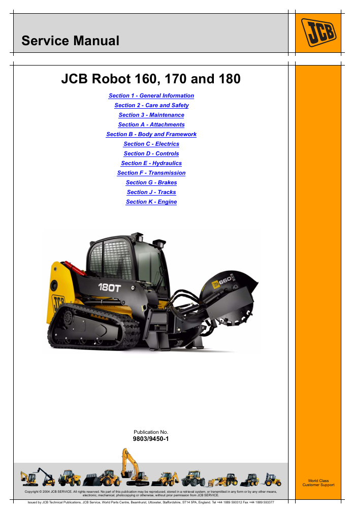 The JCB Robot 180T Skid Steer Loader Service Repair Manual is an essential resource for any technician or DIY enthusiast looking to maintain or repair this powerful machine. This comprehensive manual provides detailed instructions on troubleshooting, servicing, and repairing the JCB Robot 180T, ensuring that you can keep your equipment running smoothly and efficiently. With clear diagrams, step-by-step procedures, and in-depth technical specifications, this manual covers everything from engine maintenance to hydraulic system repairs. Whether you are performing routine maintenance or tackling more complex repairs, the JCB Robot 180T Service Repair Manual equips you with the knowledge and confidence to get the job done right, ultimately saving you time and money while extending the life of your skid steer loader