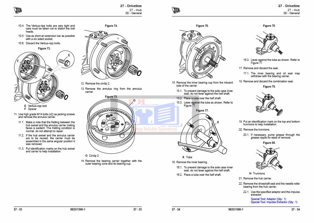 Whether you’re performing routine axle maintenance or a complete teardown, the JCB SD70 and SD80 Axle Service Repair Manual provides all the detailed information and technical support needed to keep your machines running reliably.
