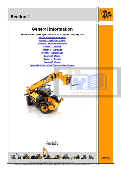 This official Service Repair Manual provides complete factory service procedures for JCB Side Engine Loadall models fitted with SH and SL engines from May 2014 onwards. Designed for technicians and service professionals, it includes everything needed to perform maintenance, diagnostics, and repairs to OEM standards.