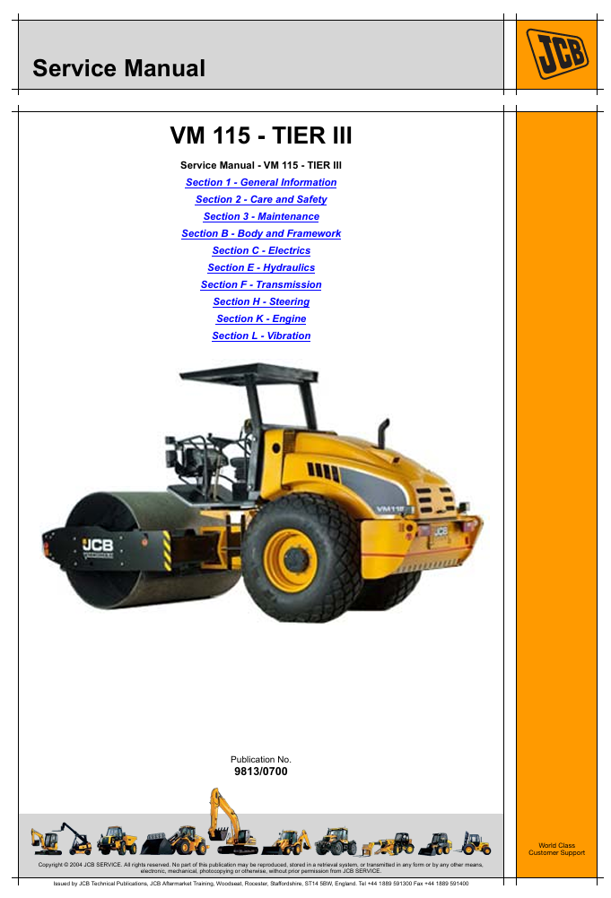 Original Factory Service Repair Manual for the JCB VM115 Road Roller. This manual is very detailed and contains all the official JCB manufacturer specifications, troubleshooting, repair instructions step by step with illustrations and wiring diagrams. Simple to complicated repairs can be completed effortlessly with the information provided. It is 100 percent complete and intact. The manual is specifically written for the DIY as well as the experienced mechanic