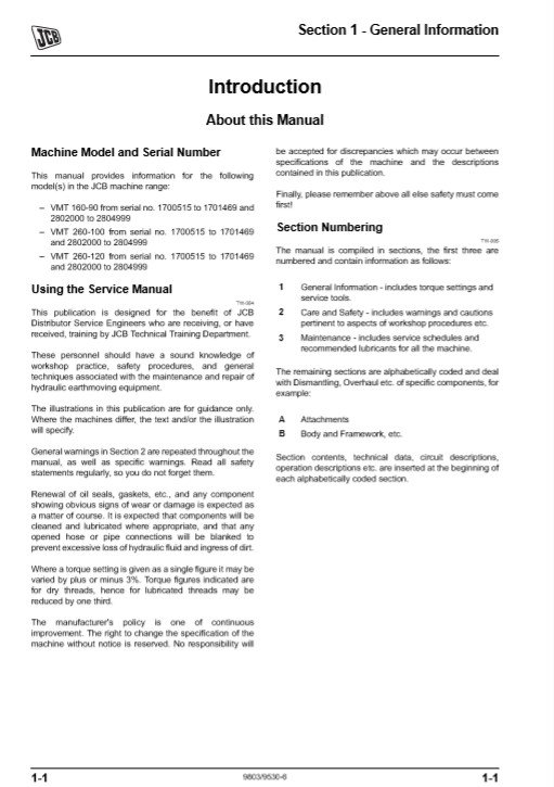 The JCB VMT160 and VMT260 Roller Service Repair Manual is an essential resource for maintaining and servicing your equipment efficiently. This comprehensive guide provides detailed instructions, diagrams, and troubleshooting tips to ensure optimal performance and longevity of your rollers. With clear, step-by-step procedures, you can confidently tackle repairs and maintenance tasks, saving time and reducing downtime. Invest in this manual to enhance your operational efficiency and keep your machinery running smoothly
