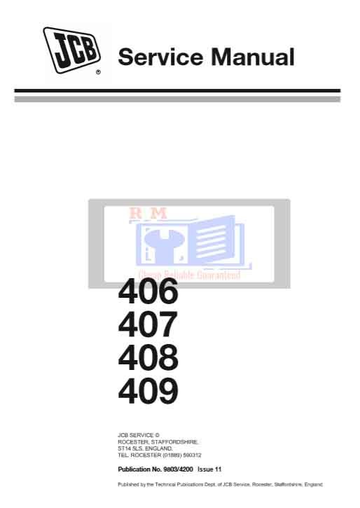 Keep your JCB wheel loaders running efficiently with this comprehensive Service Repair Manual for the JCB 406, 407, 408, and 409 models. This factory-issued manual provides in-depth maintenance and repair procedures, technical specifications, and diagnostics to ensure peak performance and reliability.