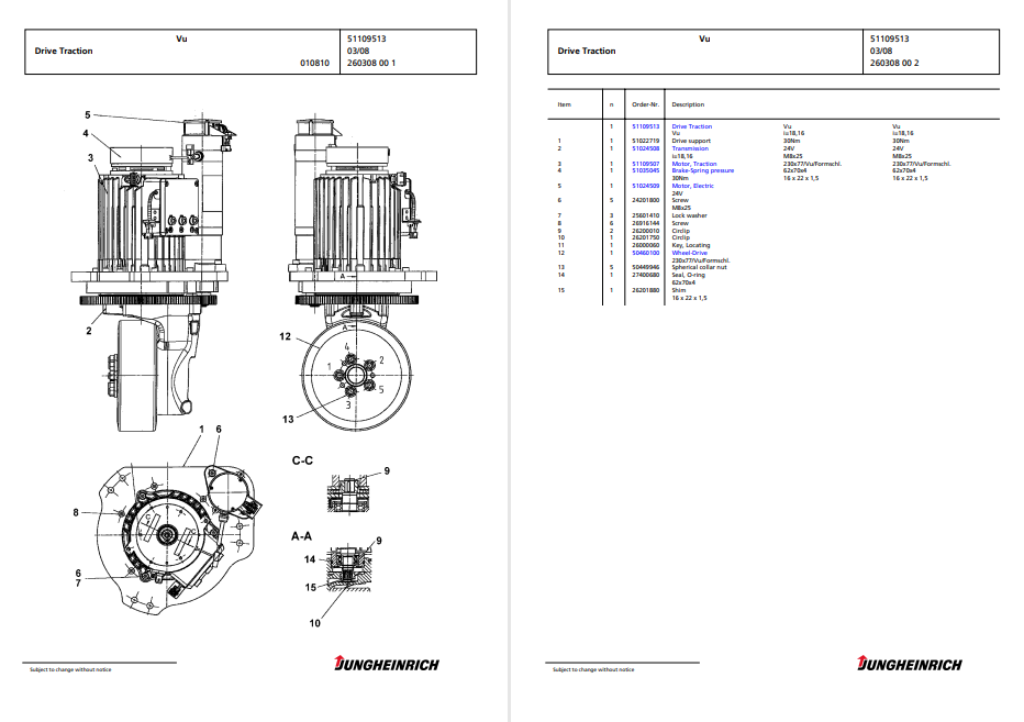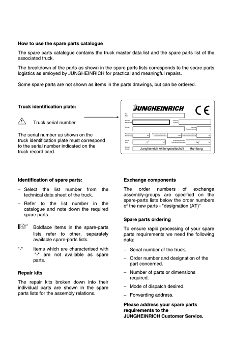With This Original Factory Spare Parts Manual The Technician can easily find any Part Number and Correct Part encountered in the operation of your Jungheinrich Forklift Excavator Models of :