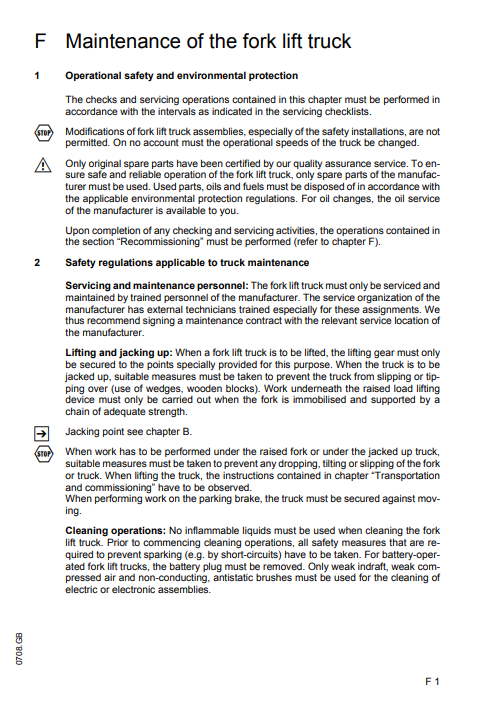 The Factory was highly recommended use this Operating Instructions Manual before you touch your Jungheinrich Forklift