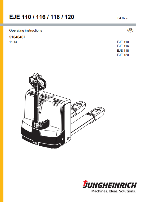 Jungheinrich EJE 110, EJE 116, EJE 118, EJE 120 Operating Instructions Manual