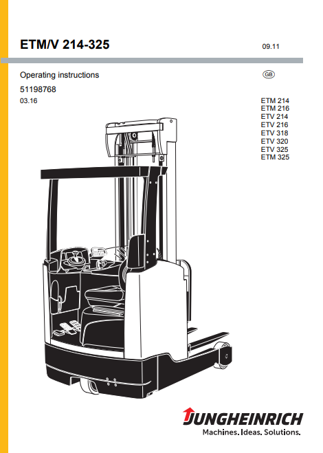 Manual for operating Jungheinrich ETM, ETV 214 to 325, providing essential instructions and safety informationJungheinrich ETM, ETV 214 to 325 Operating Instructions Manual