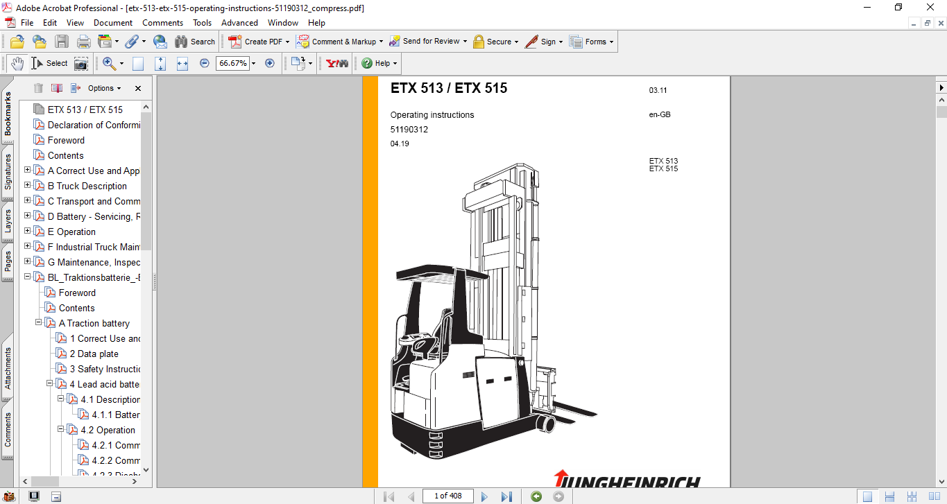 The Factory was highly recommended use this Operating Instructions Manual before you touch your Jungheinrich Forklift