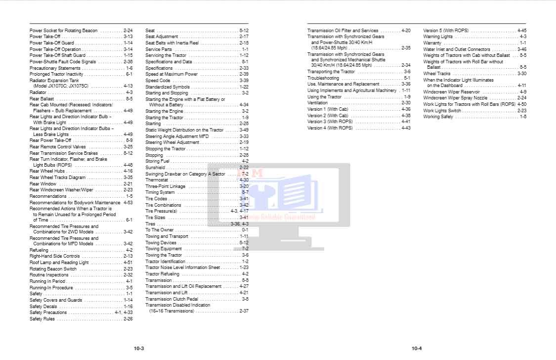 Case Tractor JX1060C JX1070C JX1075C Operators Manual