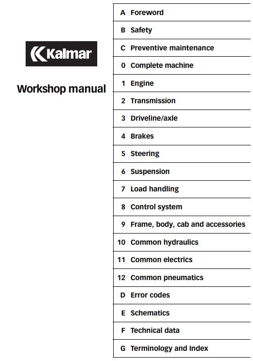 The Kalmar DCF280 and DCF500 Forklifts Workshop Repair Manual is an essential resource for maintaining and repairing your forklifts with precision and ease. This comprehensive guide provides detailed instructions, diagrams, and troubleshooting tips, ensuring that you can efficiently address any issues that may arise. With its user-friendly format, this manual empowers technicians and operators alike to enhance the longevity and performance of their equipment, ultimately saving time and reducing operational costs. Invest in this indispensable tool to keep your Kalmar forklifts running smoothly and reliably