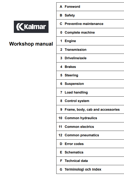 Kalmar DRF 100 Workshop Repair Manual, displaying a comprehensive guide with illustrations for effective repairs and maintenanceKalmar DRF 100 Workshop Repair Manual