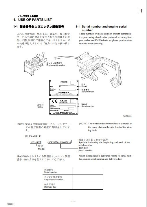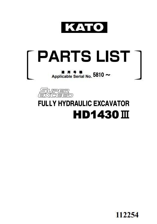 KATO Hydraulic Excavator HD1430III Parts Manual