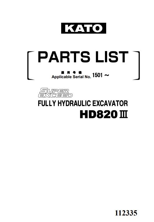 The Kato Hydraulic Excavator HD820III Parts Manual is an essential resource for maintenance and repair, providing detailed diagrams and specifications for every component of the excavator. This comprehensive guide ensures that you can efficiently identify parts, streamline repairs, and maintain optimal performance of your machinery. With clear illustrations and thorough descriptions, this manual is designed to enhance your understanding and facilitate effective servicing, making it a must-have for operators and technicians alike