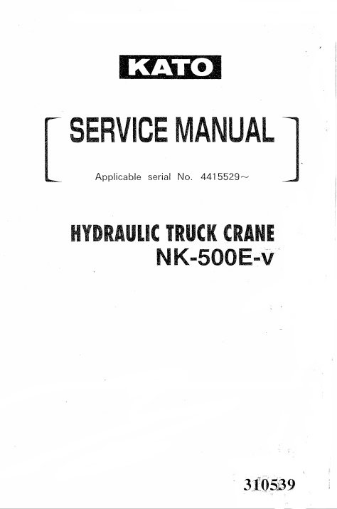 The KATO NK-500E-V Truck Crane Service Manual is an essential resource for operators and technicians, providing comprehensive guidance on maintenance, troubleshooting, and repair procedures. This manual ensures optimal performance and longevity of your crane, featuring detailed diagrams, specifications, and step-by-step instructions. Equip yourself with the knowledge to keep your equipment running smoothly and efficiently, minimizing downtime and maximizing productivity. Invest in this indispensable manual to enhance your operational expertise and safeguard your investment