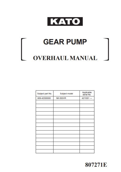 KATO NK-550VR Gear Pump Overhaul Manual
