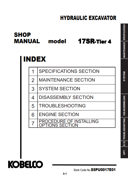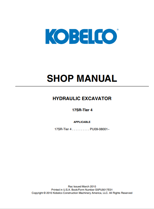The Kobelco 17SR Excavator Workshop Repair Manual is an essential resource for any technician or DIY enthusiast looking to maintain or repair their excavator with confidence. This comprehensive manual provides detailed instructions, diagrams, and specifications, ensuring you have all the information needed to perform repairs efficiently and effectively. With its user-friendly layout, you can easily navigate through troubleshooting tips and maintenance procedures, making it an invaluable tool for prolonging the life of your equipment and minimizing downtime. Invest in this manual to enhance your repair skills and keep your Kobelco 17SR running at peak performance