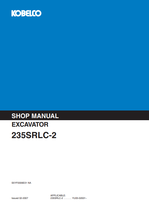 Kobelco 235SRLC-2 Excavator Workshop Repair Manual