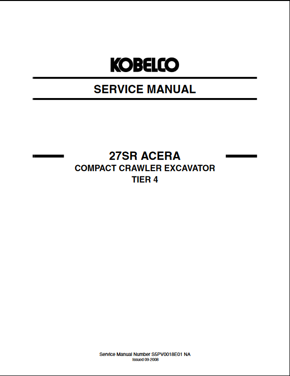 The Kobelco 27SR Excavator Service Repair Manual is an essential resource for maintaining and repairing your excavator with precision and confidence. This comprehensive guide provides detailed instructions, diagrams, and troubleshooting tips, ensuring that you can efficiently address any issues that arise. With its user-friendly format, this manual empowers both seasoned professionals and DIY enthusiasts to keep their equipment in optimal condition, ultimately enhancing performance and extending the lifespan of your Kobelco 27SR. Invest in this invaluable tool to ensure your excavator operates at its best, saving you time and money on repairs