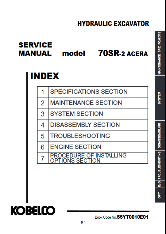 The Kobelco 70SR-2 Excavator Service Repair Manual is an essential resource for maintaining and repairing your excavator with precision and confidence. This comprehensive guide provides detailed instructions, diagrams, and troubleshooting tips, ensuring that you can efficiently address any issues that arise. With its user-friendly format, this manual empowers operators and technicians alike to enhance the performance and longevity of their equipment, making it a valuable addition to your maintenance toolkit. Invest in the Kobelco 70SR-2 Service Repair Manual today and keep your excavator running smoothly for years to come