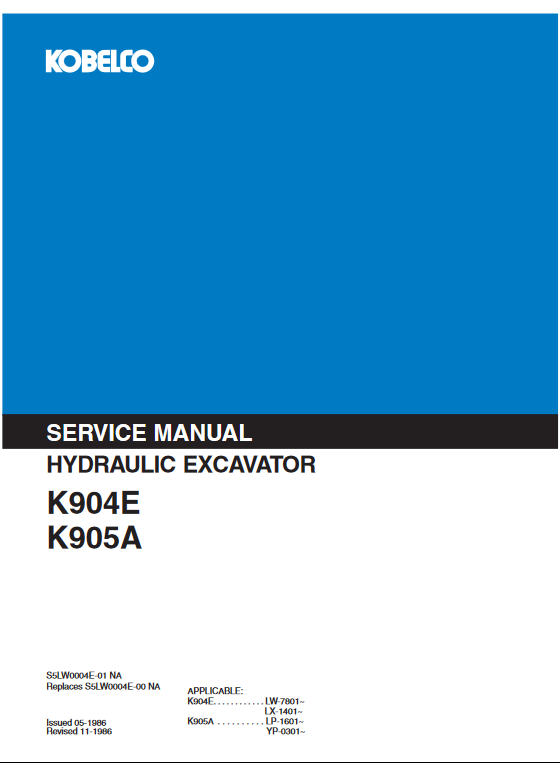 Kobelco K904E, K905A Excavator Service Repair Manual
