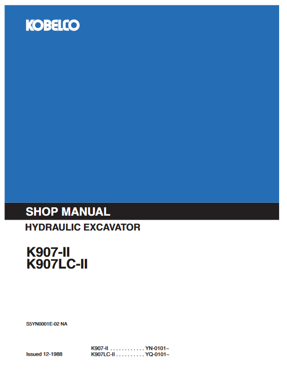 The Kobelco K907-II and K907LC-II Excavator Workshop Repair Manual is an essential resource for any technician or DIY enthusiast looking to maintain or repair these powerful machines. This comprehensive manual provides detailed instructions, diagrams, and specifications, ensuring you have all the information needed to perform repairs efficiently and effectively. With its user-friendly layout, you can quickly locate the necessary procedures, saving you time and enhancing your productivity. Invest in this manual to keep your excavator running smoothly and extend its lifespan