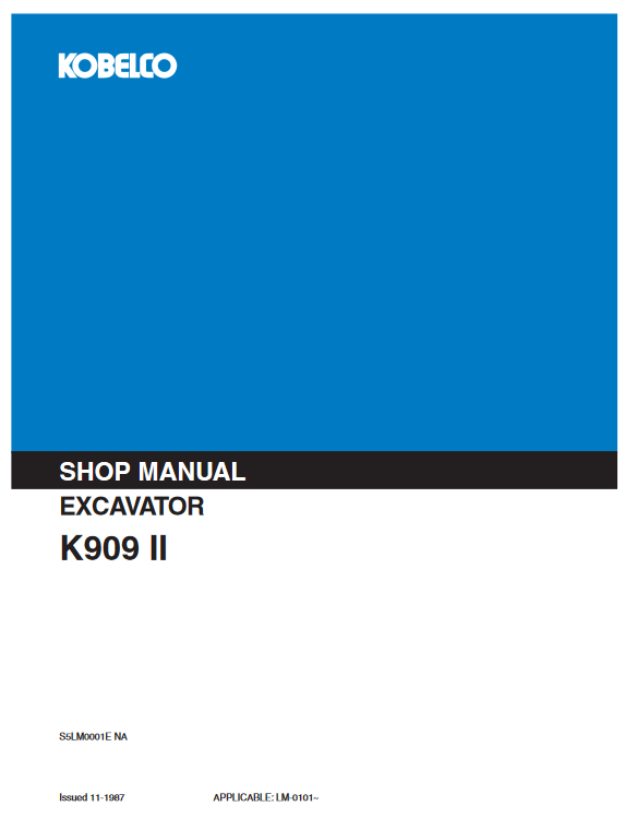 The Kobelco K909-II Excavator Workshop Repair Manual is an essential resource for any technician or DIY enthusiast looking to maintain or repair their excavator with precision. This comprehensive manual provides detailed diagrams, step-by-step instructions, and troubleshooting tips, ensuring that you can efficiently address any mechanical issues. With its user-friendly format, you can easily navigate through complex procedures, saving time and reducing the risk of costly mistakes. Invest in this manual to enhance your repair skills and keep your Kobelco K909-II running at peak performance
