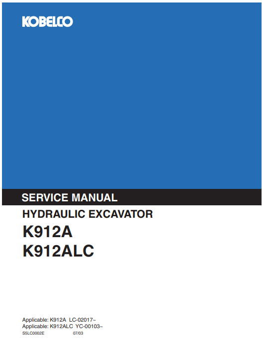Kobelco K912A, Kobelco K912ALC Excavator Service Repair Manual