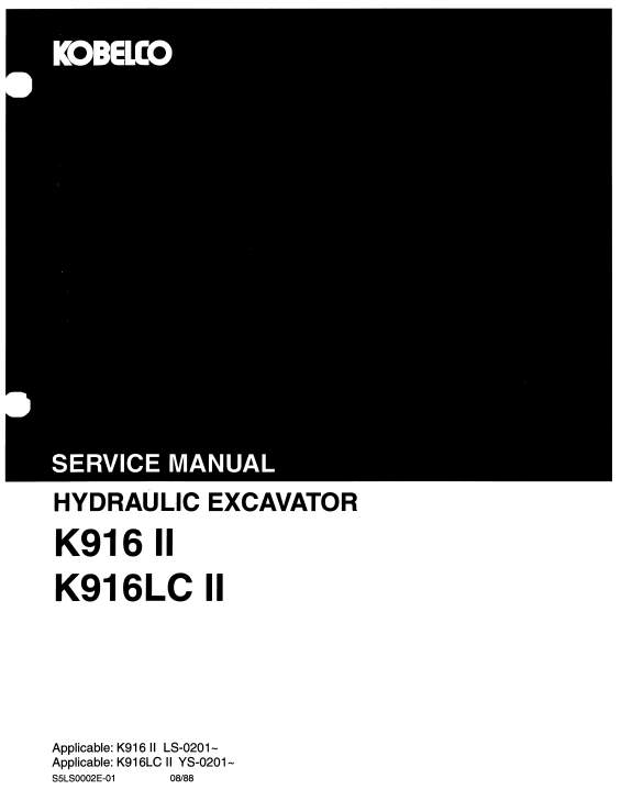 Kobelco K916-II, K916LC-II Excavator Service Repair Manual