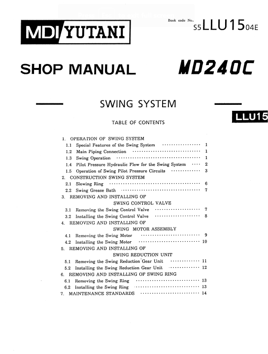 MD240C Excavator [LLU-0301~0600]