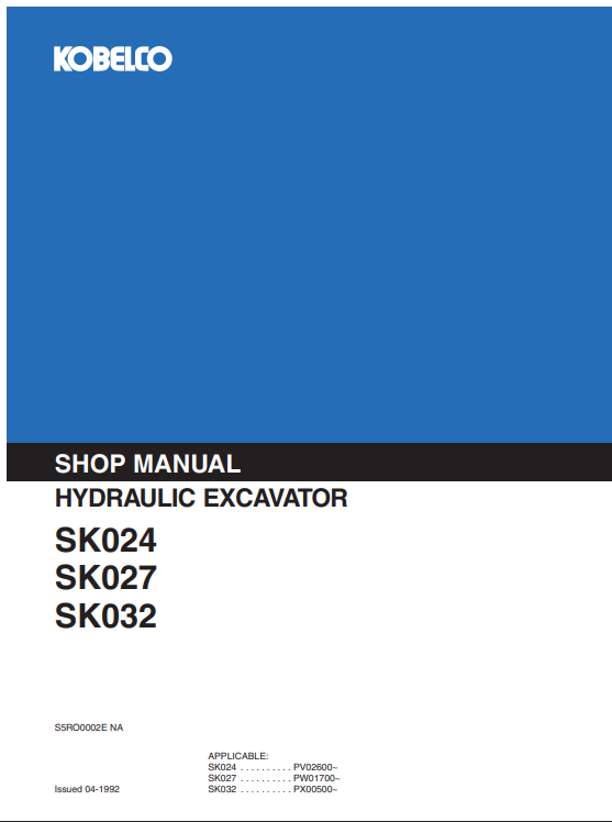 Comprehensive repair manual for Kobelco SK024, SK027, and SK032 excavators, covering essential maintenance guidelinesKobelco SK024 , Kobelco SK027 , Kobelco SK032 Excavator Workshop Repair Manual