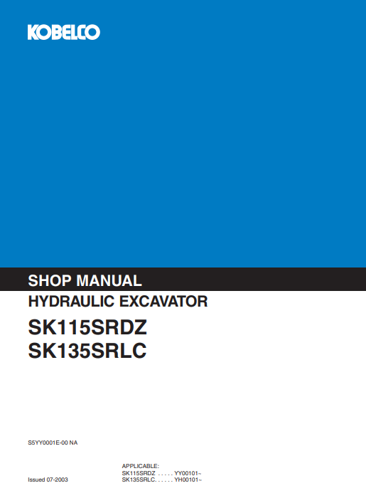 The Kobelco SK115SRDZ and SK135SRLC Workshop Repair Manual is an essential resource for professionals and enthusiasts alike, providing comprehensive guidance for maintenance and repair. This manual features detailed diagrams, step-by-step instructions, and troubleshooting tips, ensuring that you can efficiently service your equipment. With its user-friendly format, you can easily navigate through complex procedures, saving time and reducing downtime on the job. Invest in this manual to enhance your technical knowledge and keep your Kobelco machinery operating at peak performance