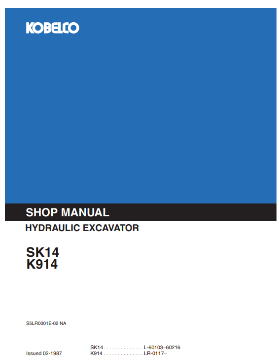 Workshop Repair Manual for Kobelco SK14 and K914 Excavators detailing maintenance and troubleshooting guidelinesKobelco SK14 , Kobelco K914 Excavator Workshop Repair Manual