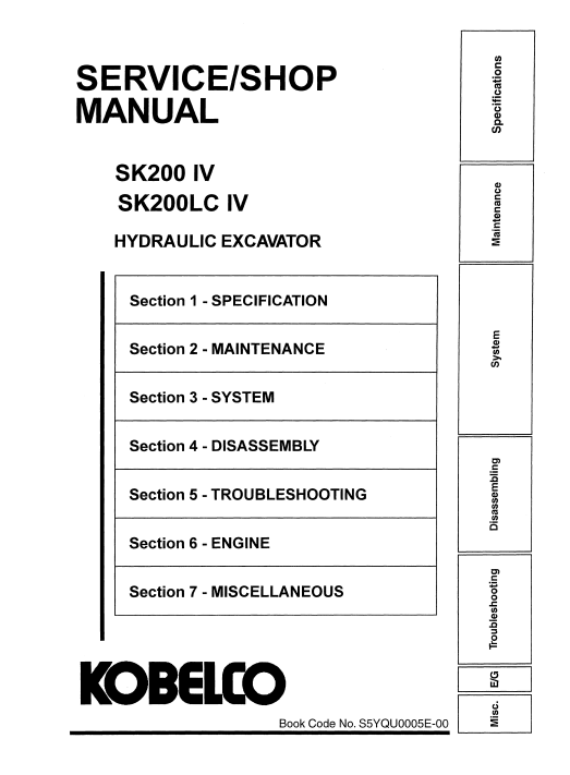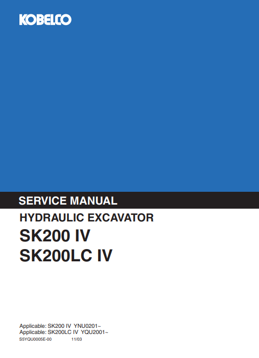 The Kobelco SK200 IV and SK200LC IV Service Repair Manual is an essential resource for maintaining and repairing your excavator with precision and confidence. This comprehensive guide provides detailed instructions, diagrams, and troubleshooting tips, ensuring that you can efficiently address any issues that may arise. With this manual, you can extend the lifespan of your equipment, reduce downtime, and enhance overall performance, making it a valuable investment for any operator or technician