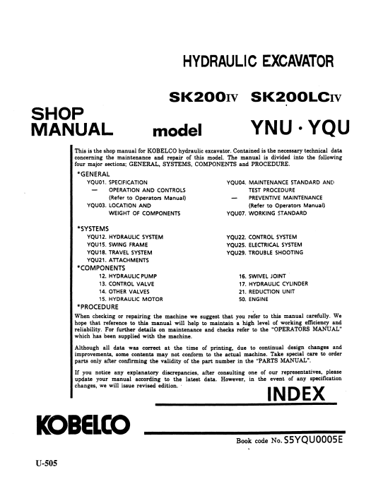 With This Original Factory Service Repair Manual The Technician can Find and Solve any problems encountered in the operation of your Kobelco Excavator Models of :