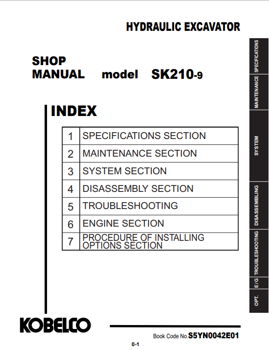 The Kobelco SK210-9 Excavator Workshop Repair Manual is an essential resource for any technician or DIY enthusiast looking to maintain or repair their excavator with confidence. This comprehensive manual provides detailed instructions, diagrams, and specifications, ensuring you have all the information needed to perform repairs efficiently and effectively. With its user-friendly layout, you can easily navigate through troubleshooting tips and maintenance procedures, ultimately extending the life of your equipment and enhancing its performance. Invest in this manual to save time and reduce costly repairs, making it a must-have for every Kobelco SK210-9 owner