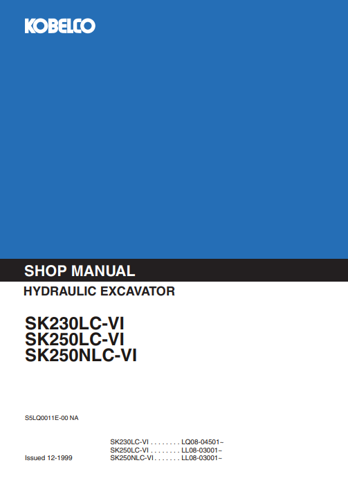 Kobelco SK230LC-VI, SK250LC-VI, SK250NLC-VI Workshop Repair Manual