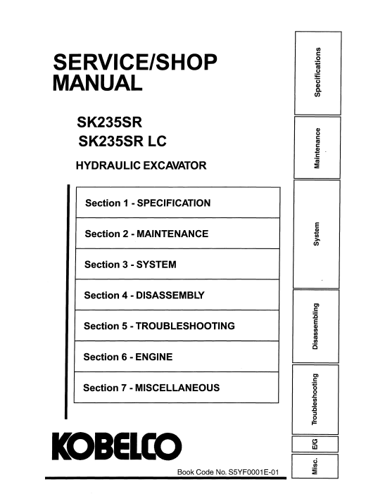 The Kobelco SK235SR and SK235SRLC Service Workshop Manual is an essential resource for maintaining and servicing your excavator. This comprehensive guide provides detailed instructions, diagrams, and troubleshooting tips to ensure optimal performance and longevity of your machinery. With clear, step-by-step procedures, this manual empowers technicians and operators alike to efficiently address repairs and maintenance tasks, ultimately saving time and reducing downtime. Invest in this manual to enhance your operational efficiency and keep your Kobelco excavator running smoothly