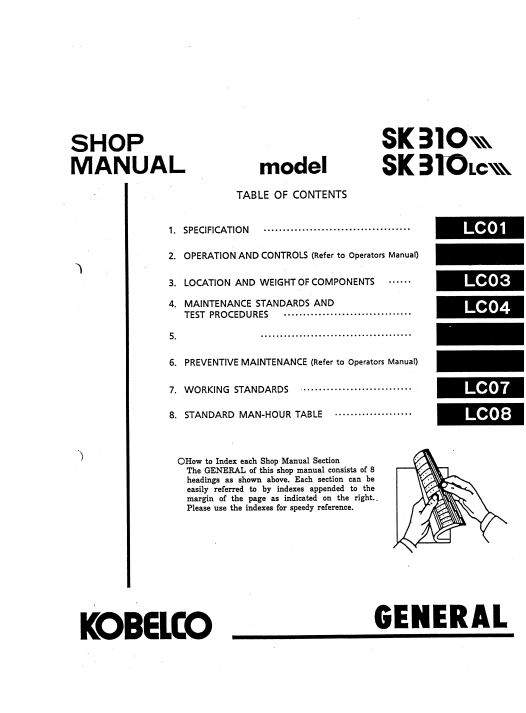 Service repair manual for Kobelco SK310 III and SK310LC III, displaying diagrams and guidelines for effective maintenanceKobelco SK310 III, Kobelco SK310LC III Service Repair Manual