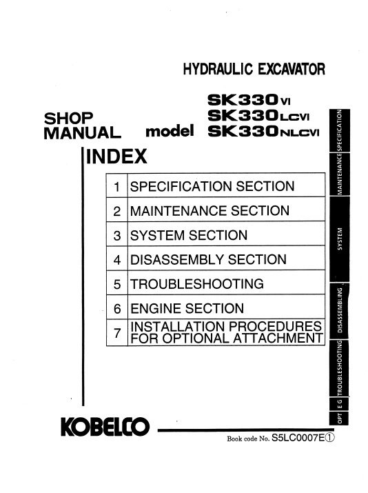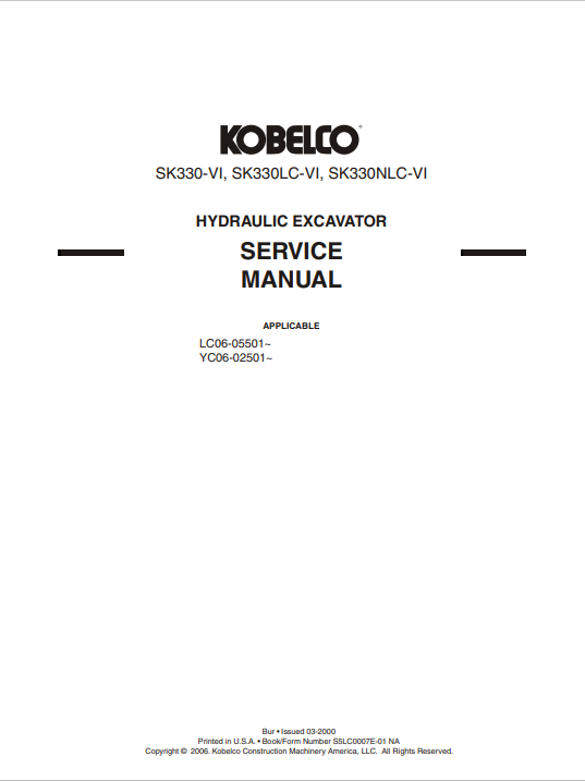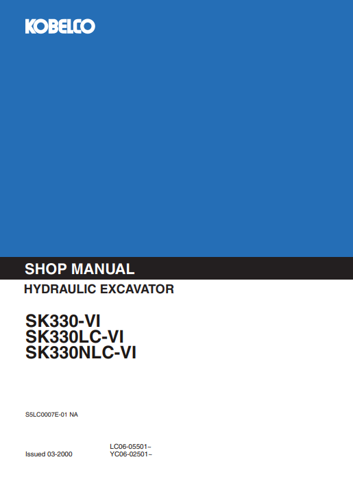 The Kobelco SK330-VI, SK330LC-VI, and SK330NLC-VI Workshop Repair Manual is an essential resource for maintaining and repairing your Kobelco excavators. This comprehensive manual provides detailed instructions, diagrams, and specifications to ensure efficient troubleshooting and repairs. With clear guidance on maintenance procedures and parts identification, you can enhance the longevity and performance of your machinery, making it a valuable addition to your workshop toolkit. Invest in this manual to keep your equipment running smoothly and minimize downtime