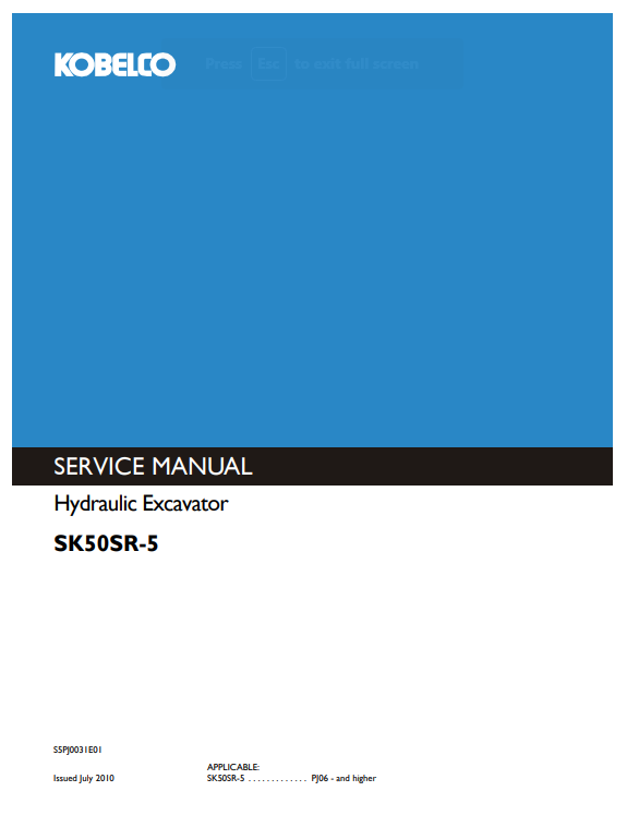 The Kobelco SK50SR-5 Excavator Service Repair Manual is an essential resource for maintaining and repairing your excavator with precision and ease. This comprehensive guide provides detailed instructions, diagrams, and troubleshooting tips, ensuring that you can efficiently address any issues that may arise. With its user-friendly format, this manual empowers operators and technicians alike to enhance the performance and longevity of their equipment, making it a must-have for anyone serious about excavator maintenance