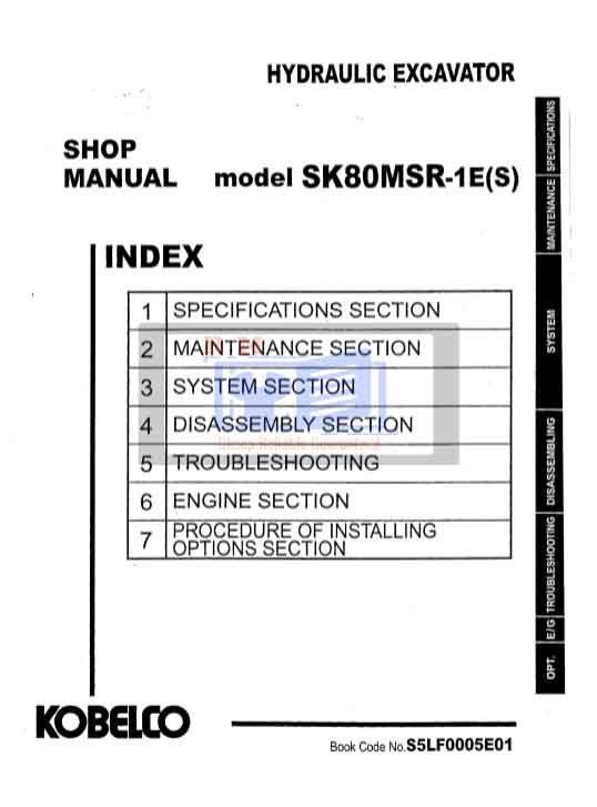 Whether you’re performing a quick service or a complete overhaul, this manual is your essential companion for maximizing the performance and longevity of your Kobelco SK80MSR-1ES Excavator