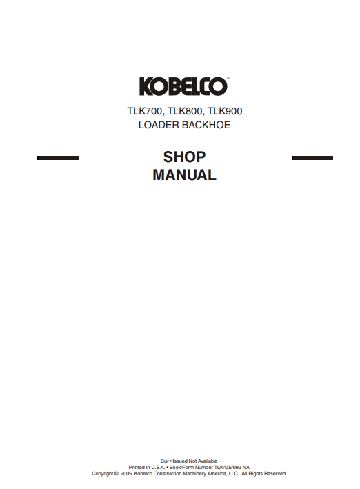 The Kobelco TLK700, TLK800, and TLK900 Backhoe Loader Workshop Repair Manual is an essential resource for any technician or DIY enthusiast looking to maintain and repair these powerful machines. This comprehensive manual provides detailed instructions, diagrams, and troubleshooting tips to ensure optimal performance and longevity of your backhoe loader. With clear, step-by-step guidance, you can confidently tackle repairs and maintenance tasks, saving time and money while keeping your equipment in peak condition. Invest in this workshop manual to enhance your knowledge and ensure your Kobelco backhoe loader operates at its best