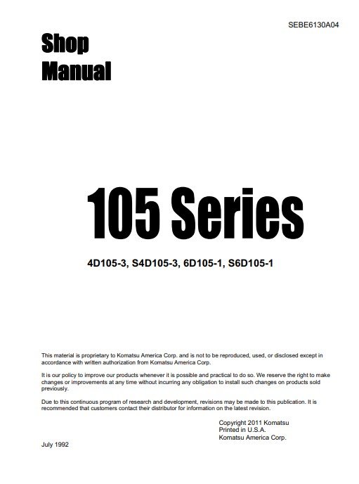 Komatsu 105 Engine Series Workshop Manual