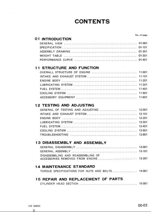 Discover the ultimate resource for maintaining and repairing your Komatsu 105 Engine Series with our comprehensive Workshop Manual. This expertly crafted guide provides detailed instructions, diagrams, and specifications to ensure you can efficiently troubleshoot and service your engine. With clear illustrations and step-by-step procedures, this manual empowers both professionals and DIY enthusiasts to achieve optimal performance and longevity from their equipment. Invest in your machinery’s reliability and efficiency today with the Komatsu 105 Engine Series Workshop Manual