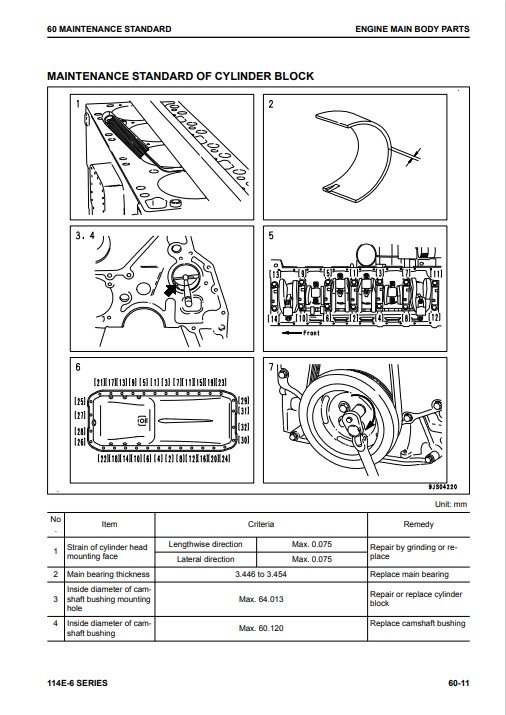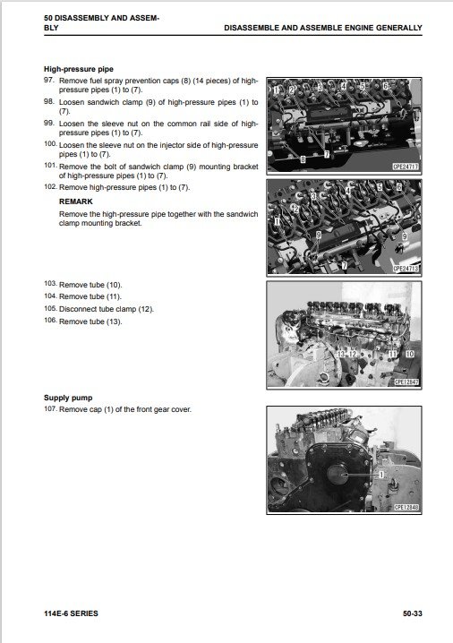Komatsu 114E-6 Engine Series Workshop Manual with images of engine components and repair instructions for techniciansKomatsu 114E-6 Engine Series Workshop Manual