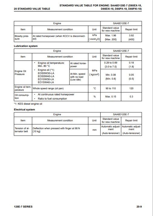 STANDARD VALUE TABLE FOR ENGINE: D85EX-18, D85EXI-18, D85PX-18,D85PXI-18)