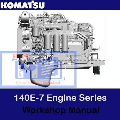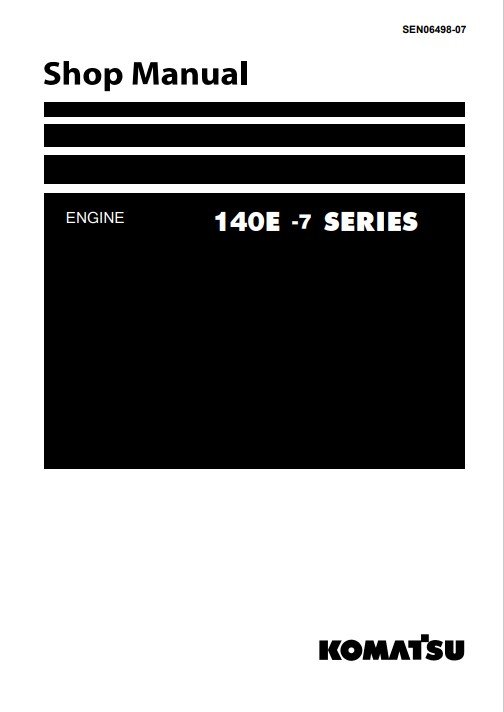 Komatsu 140E-7 Engine Series Workshop Manual cover with illustrations and detailed information for engine maintenanceKomatsu 140E-7 Engine Series Workshop Manual