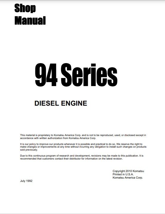 The Komatsu 2D94-2, 3D94-2, 4D94-2, and 4D94-3 Engine Series Workshop Manual is an essential resource for professionals and enthusiasts alike, providing comprehensive guidance on maintenance and repair procedures. This manual features detailed diagrams, step-by-step instructions, and troubleshooting tips, ensuring you can efficiently service your engine and maximize its performance. With this workshop manual, you gain the confidence to tackle any engine issue, prolonging the life of your equipment and enhancing its reliability. Invest in this manual today to ensure your Komatsu engines operate at their best
