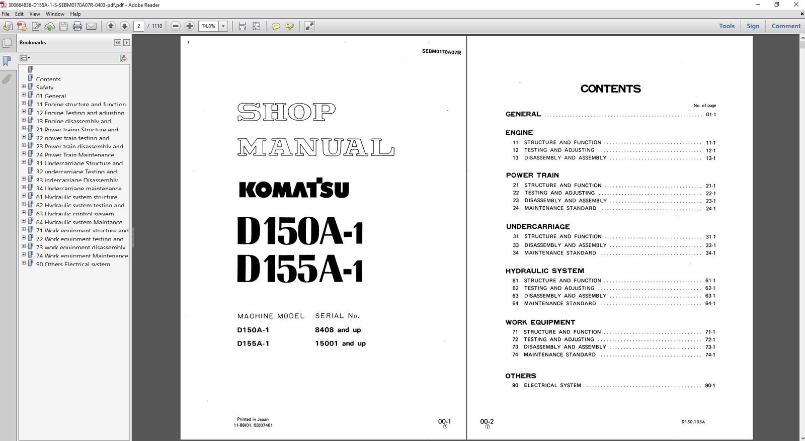The full potential of your Komatsu D155A-1 Bulldozer with our comprehensive Workshop Repair Manual, meticulously designed to provide you with all the essential information needed for effective maintenance and repair. This manual is an invaluable resource, featuring detailed diagrams, step-by-step instructions, and troubleshooting tips that cover every aspect of your bulldozer’s operation. Whether you’re a seasoned mechanic or a DIY enthusiast, you’ll appreciate the clarity and precision of the content, which includes specifications, service intervals, and safety precautions. With this manual at your fingertips, you can ensure optimal performance, extend the lifespan of your equipment, and minimize downtime, making it a must-have for anyone looking to maintain their Komatsu D155A-1 in peak condition