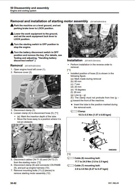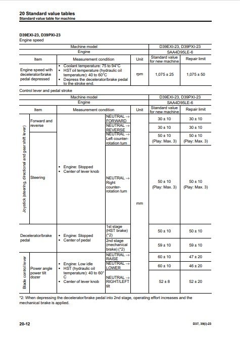 Enhance your maintenance capabilities with the comprehensive Workshop Manual for the Komatsu D37EXi-23, D37PXi-23, D39EXi-23, and D39PXi-23 models. This essential guide provides detailed instructions, diagrams, and troubleshooting tips to ensure optimal performance and longevity of your machinery. With clear, step-by-step procedures, you can confidently tackle repairs and maintenance tasks, reducing downtime and increasing productivity on the job site. Invest in this manual to empower your team with the knowledge needed to keep your Komatsu equipment running smoothly